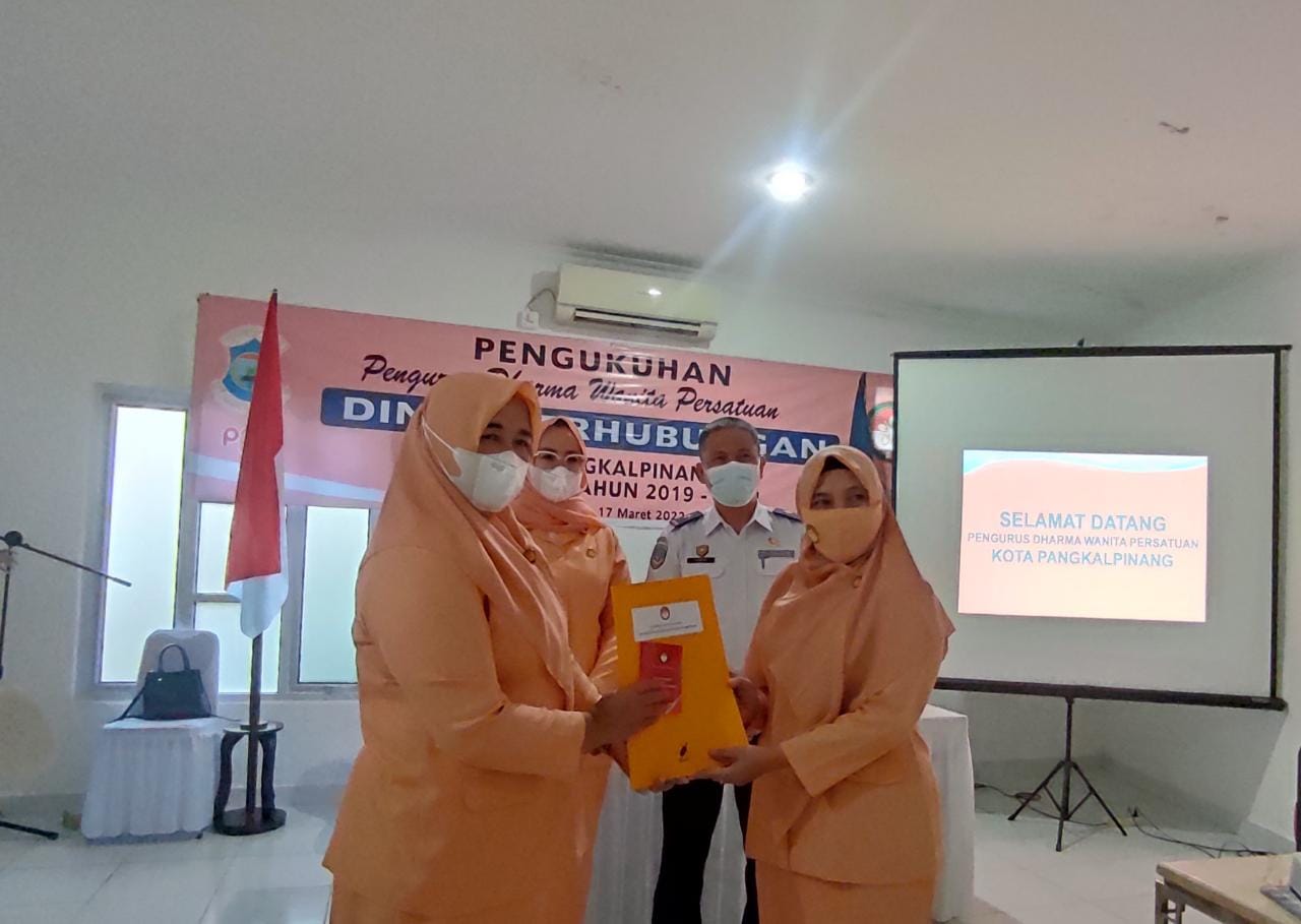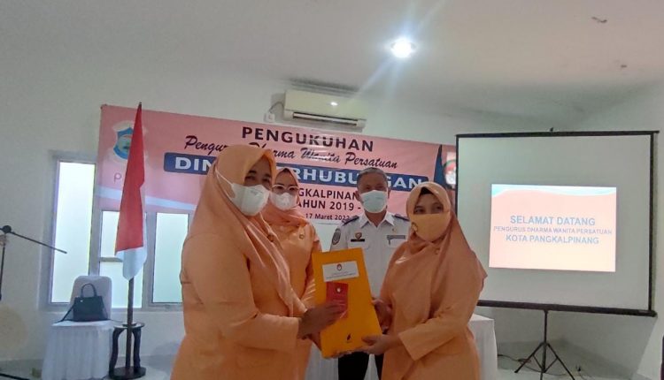 PANGKALPINANG, DISKOMINFO – Ketua Tim Penggerak PKK Kota Pangkalpinang, Monica Haprinda menghadiri pengukuhan kepungurusan Dharma Wanita Persatuan (DWP) Dinas Perhubungan Kota Pangkalpinang masa bakti 2019 – 2024, Kamis (17/3/2022) di Kantor Dinas Perhubungan.